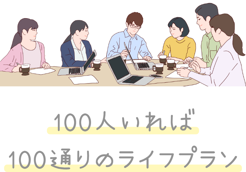 将来の目標や価値観、家庭環境などは一人ひとりが異なり、100人いれば100通りのライフプランがあります。じぶん自身においても、どの選択肢を選ぶかによって、複数のプランが考えられますから、人生はいくらでも練ることができます。大いに選択肢を考えていきましょう。それによって、今後どのような努力をしたらよいかも見えてくることでしょう。