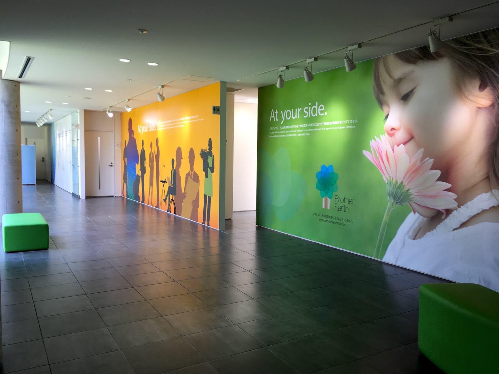 その中の「 コミュニケーションゾーン」というハイテクな巨大スクリーンがあるスペースに案内されました。目の前に広がる未来的スクリーン。もうこれを見ただけで、気分が上がります。 (余談ですが、みなが持つあの某スマートフォンのアルミボディを削る工程に出てくるドリルは、実はブラザー製なんです!あのスマートフォンもブラザー製ドリルがなかったら存在していなかったのかも!と一人「都市伝説」気分。)