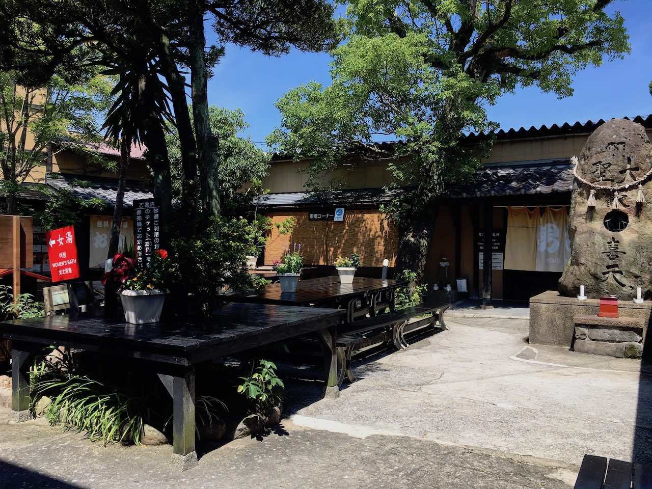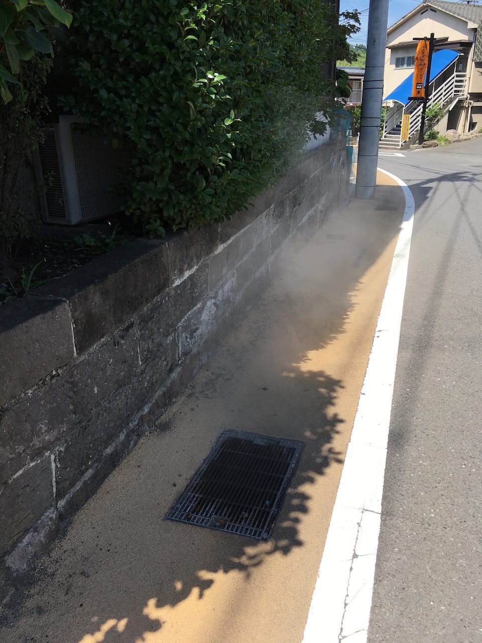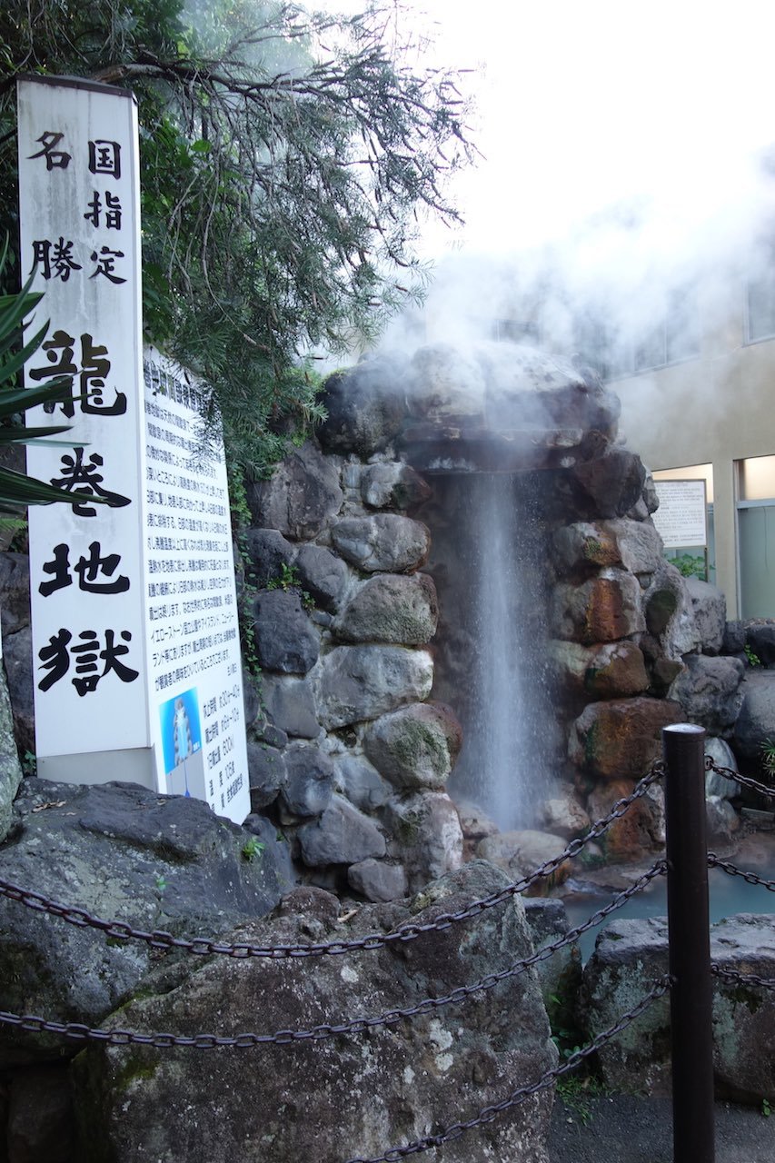 最後は、名物の一つにもなっているドドドドドーッという轟音と共に落ちてくる 「瀧湯」これが圧巻です!修行のようになります(笑)。こうして約 3時間くらい。ほとんど寝ていたような気がしますが温泉を出る頃には、めちゃめちゃいい感じの気怠さになりました。ここは 「砂湯」が名物でもあるのですが、もはや入る余力なし(笑)完全に仕上がっていました。こうして、ひょうたん温泉を後にしたのですが、帰りのバスを待っていると、排水溝という排水溝からも湯けむりがあがっていました。夏なのでちょっと見えづらいそうですが、もうちょっと涼しい時期ですと湯けむりの街と化しているようです。