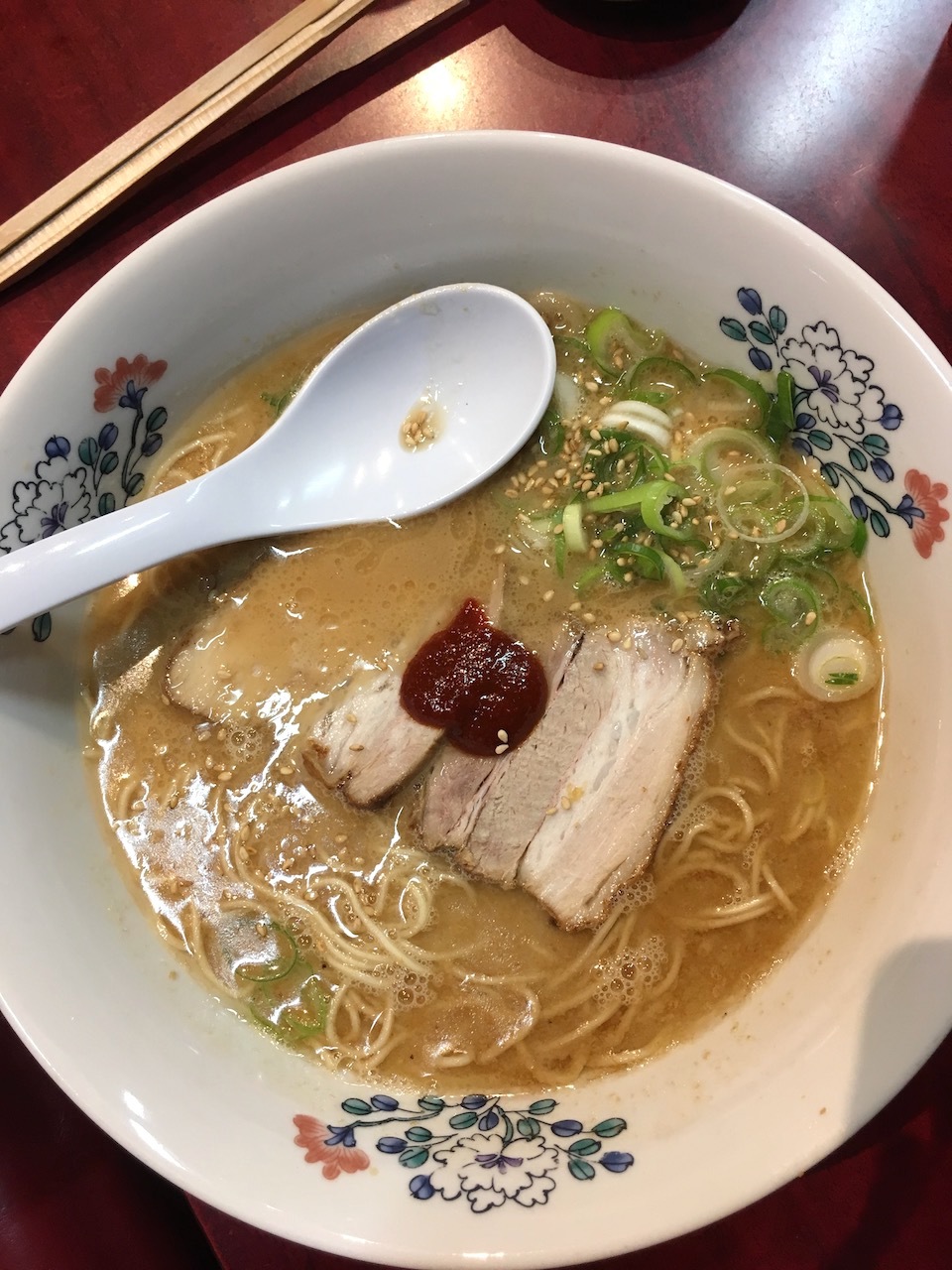 大分の豚骨らーめん。これがまためちゃめちゃ絶妙!