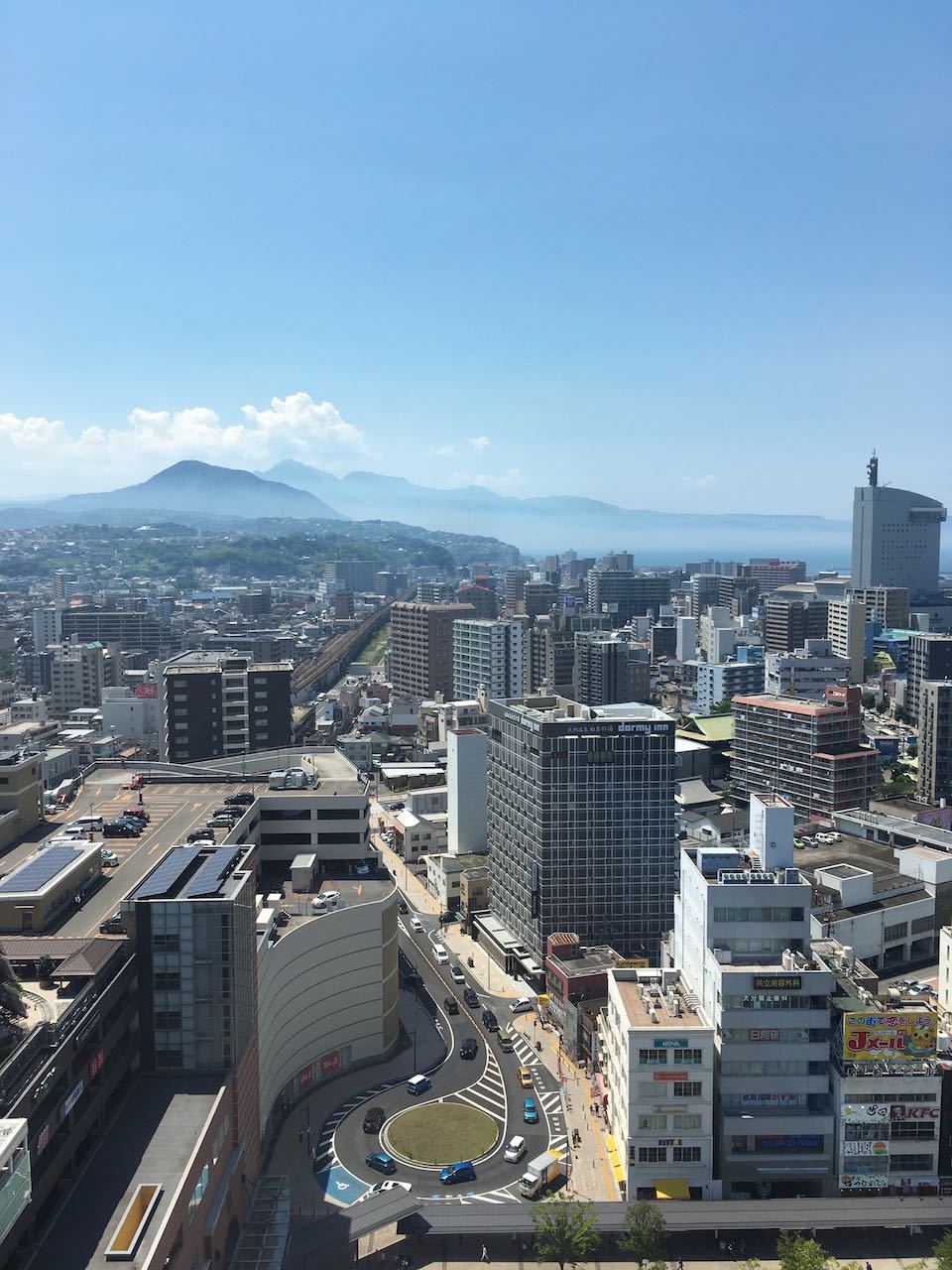 大分駅からの一望。上空からの景色がまた素晴らしい!この景色を眺めながら温泉に浸かれるSPAがあるんです。「CITY SPA てんくう」より撮影。