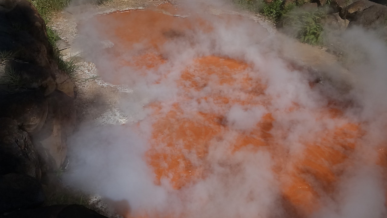 どこからも湯けむりが出ている状態です。この土地全体が温泉と化していました。