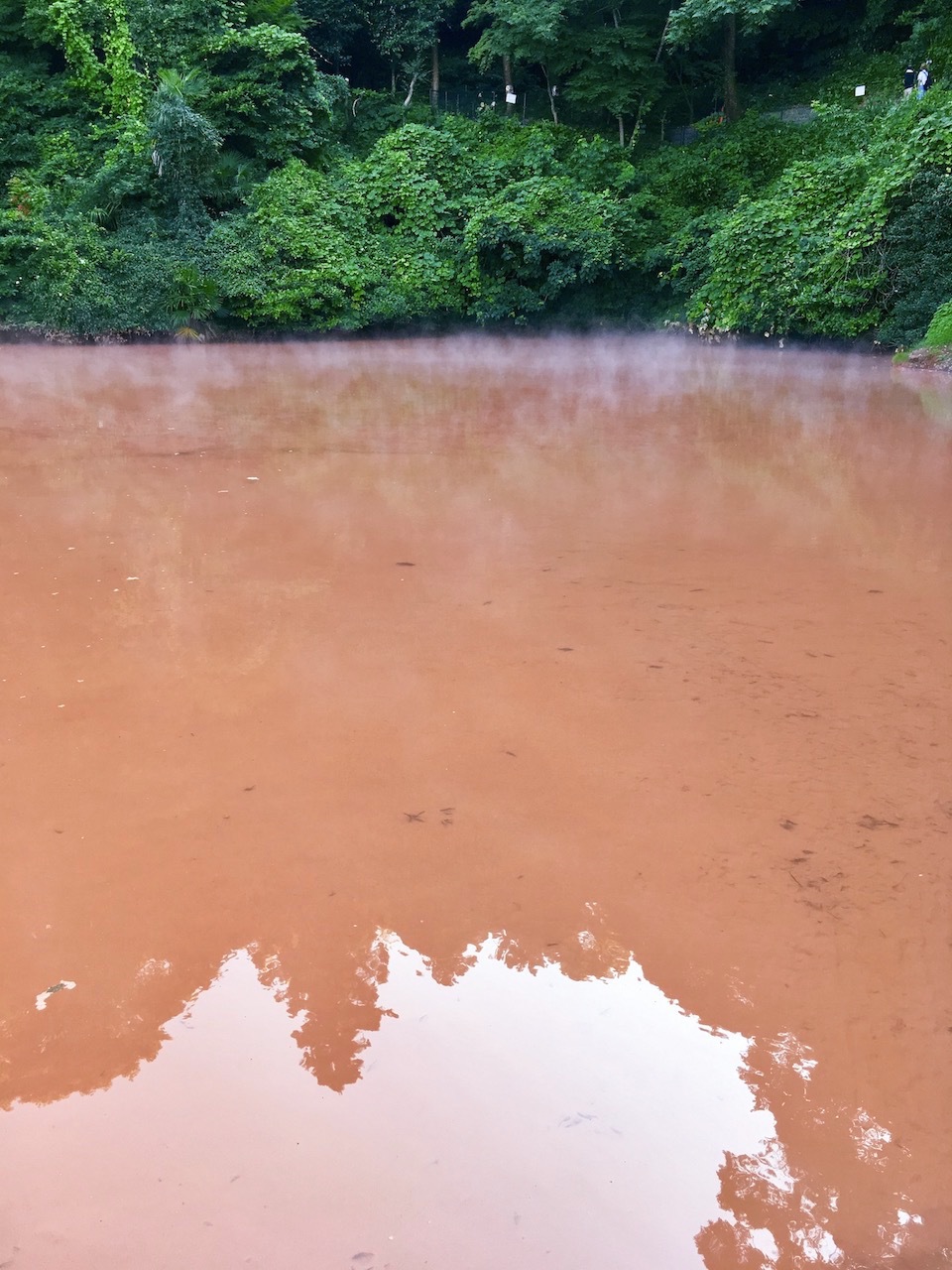 そしてラストは、もっとも有名な「血の池地獄」本当に赤いです。見た目とは裏腹に、湯の温度は実は一番低い。約78度